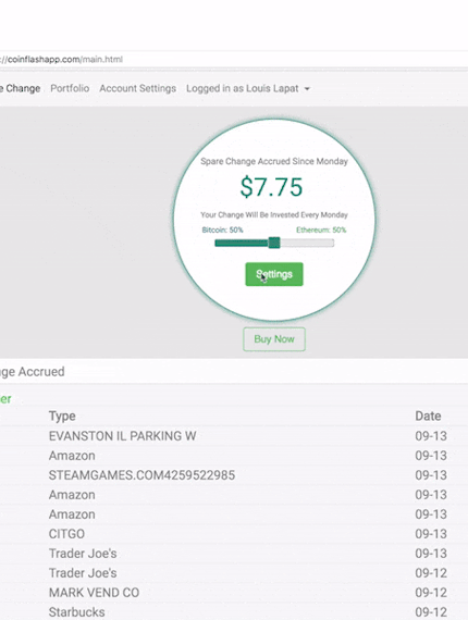 Tag Line : Automatically invest your spare change into cryptocurrency.